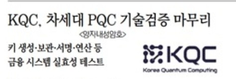 한국퀀텀컴퓨팅(KQC)이 IBK기업은행과 협력해 차세대 금융 보안 기술인 양자내성암호(PQC) 기술검증(PoC)을 성공적으로 마쳤다.
